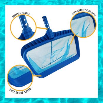 The perfect skimmer net to catch small particles of dirt and debris from your swimming pool.